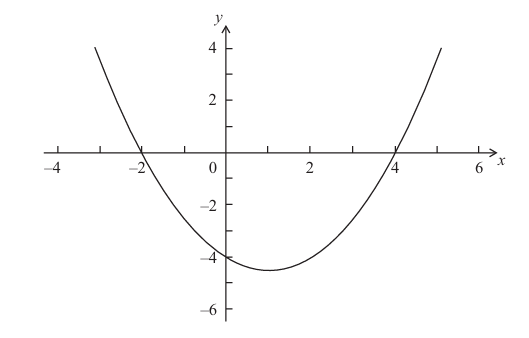The following diagram shows part of the graph of `f`, where `f(x)=x^2-x-2`