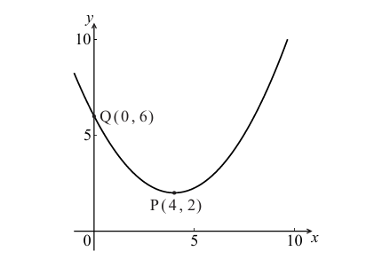 The vertex is at `P(4,2)` and the `y`-intercept is at `Q(0,6)`