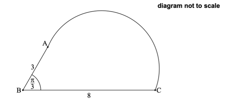 The following diagram shows triangle ABC, with `AB=3` cm, `BC=8` cm, and `hat(ABC)=pi/3`.