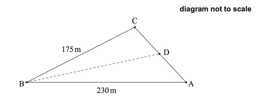 `(sin 27^@) / (108.623...) = (sin hat A) / 175` OR `cos A = ((108.623...)^2 + 230^2 - 175^2) / (2 xx 108.623... xx 230)`
