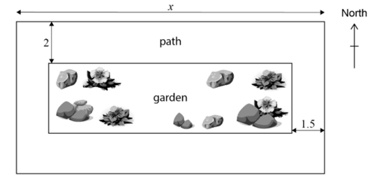 (length of garden =) `x-3`, (width of garden =) `1200/x-4`