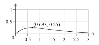 (d) Sketch the graph of `x` against `t`, labelling the maximum point of the graph with its coordinates.