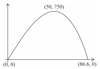 `x=9.64(9.64011…)(m)` OR `x=93.4(93.3598…)(m)`