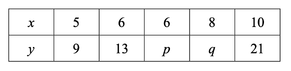 Consider the following bivariate data set where `p,q in ZZ^+`.