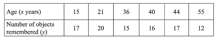 Tania wishes to see whether there is any correlation between a person’s age and the number of objects on a tray which could be remembered after looking at them for a certain time.
