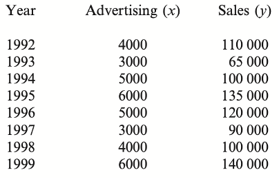 (ii) The annual advertising expenditures and sales, in dollars, for a small company are listed below.
