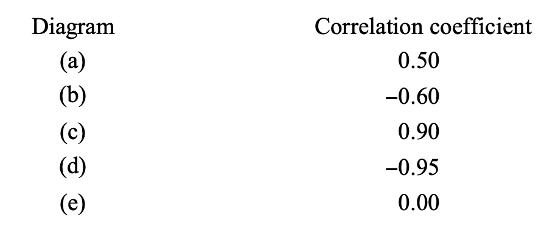 (i) The following values are the product-moment correlation coefficients for the five scatter diagrams below.
