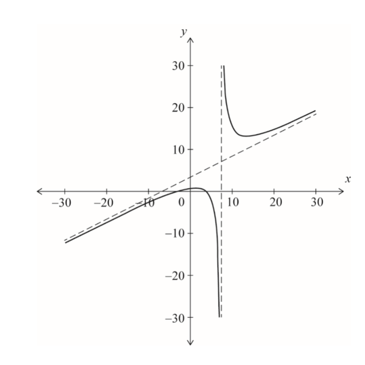 (c) The oblique asymptote of the graph of f can be written as `y = ax +b`where `a, b in Q`