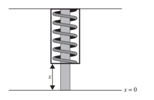 The displacement, `x`, of the spring is measured, in centimetres, from the equilibrium position of `x=0`. The value of can be modelled by the following second order differential equation, where t is the time, measured in seconds, after the initial displacement.