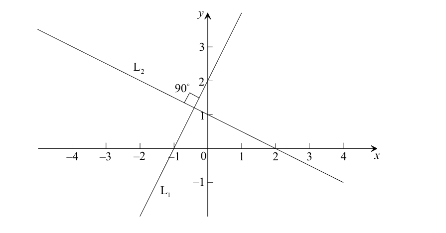 (a) `L_1` has gradient 2 and `L_2`has gradient `-1/4`