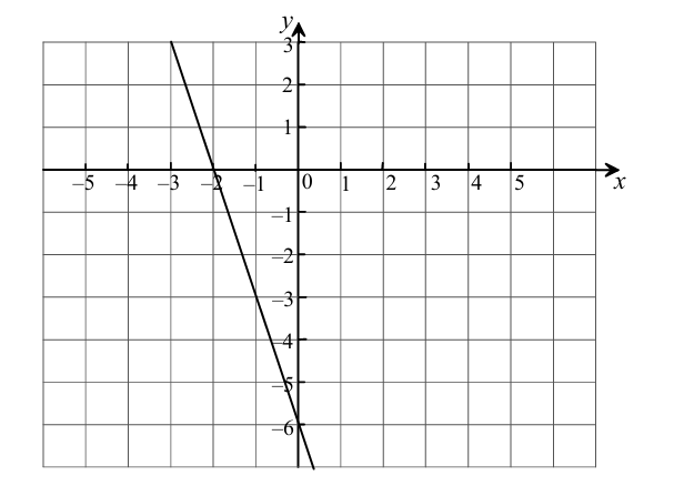 (a) On the grid above, draw a straight line with a gradient of `-3`that passes through the point `(-2,0)`.