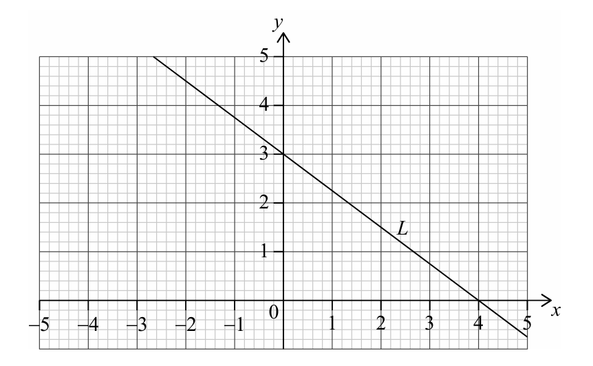 Line `L`has a `y`-intercept at `(0,3)`and an `x`-intercept at `(4,0)`, as shown on the following diagram.