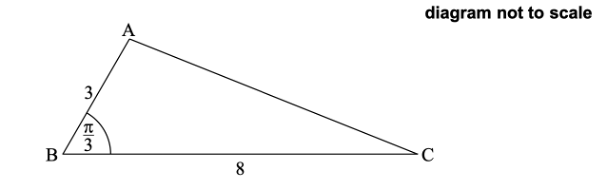 The following diagram shows triangle ABC, with `AB=3` cm, `BC=8` cm, and `hat(ABC)=pi/3`.