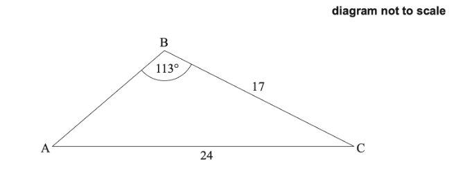 The following diagram shows triangle ABC, with `AC=24`, `BC=17`, and `hat(ABC)=113^@`.