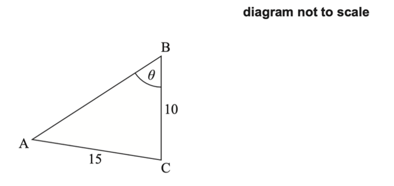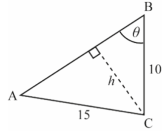 `AC = 15` cm, `BC = 10` cm, and `hat (ABC) = theta`.