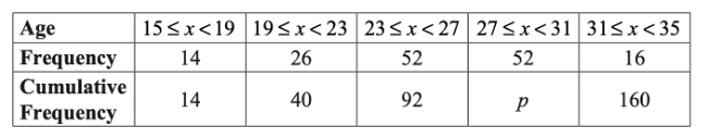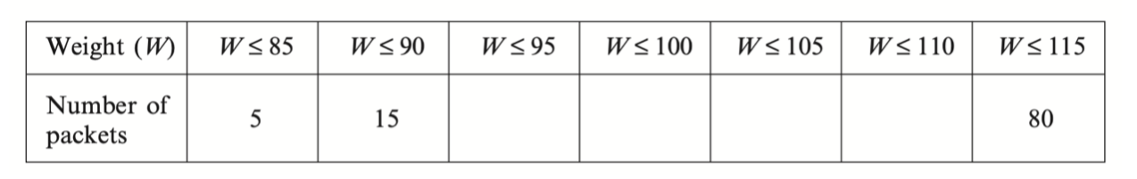 (b) The following table gives some of the cumulative frequencies for the information above.